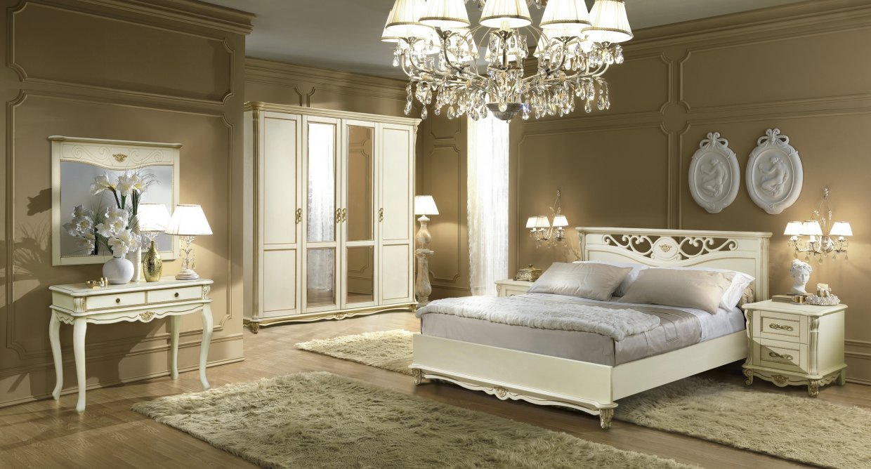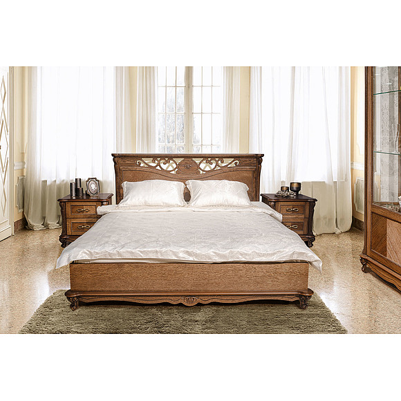 атериал: Массив (дуб) Цвет: Слоновая кость с золочением Механизм трансформации: без механизма Спальное место: 2000x1600 мм Размер: 2150x1852x1045 мм